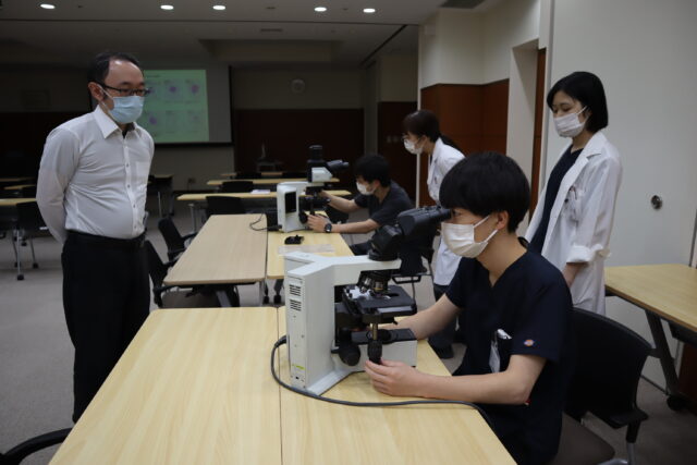 研修医の皆さんは、顕微鏡を覗き込み、細胞の特徴を一つひとつ確認しながら真剣な眼差しを向ける姿が印象的でした。